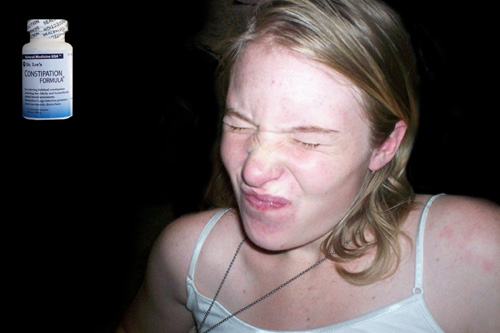 여자가 찡그린이유는 힘을 주고 있기 때문이겠군요. 이건 변비약 광고군요.