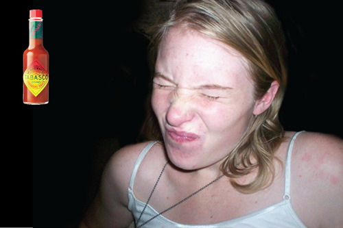 여자가 찡그린이유는 무척 매워서겠군요. 이건 핫소스 광고군요.