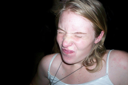 여기 찡그린 얼굴을 한 여자가 한명 있군요.